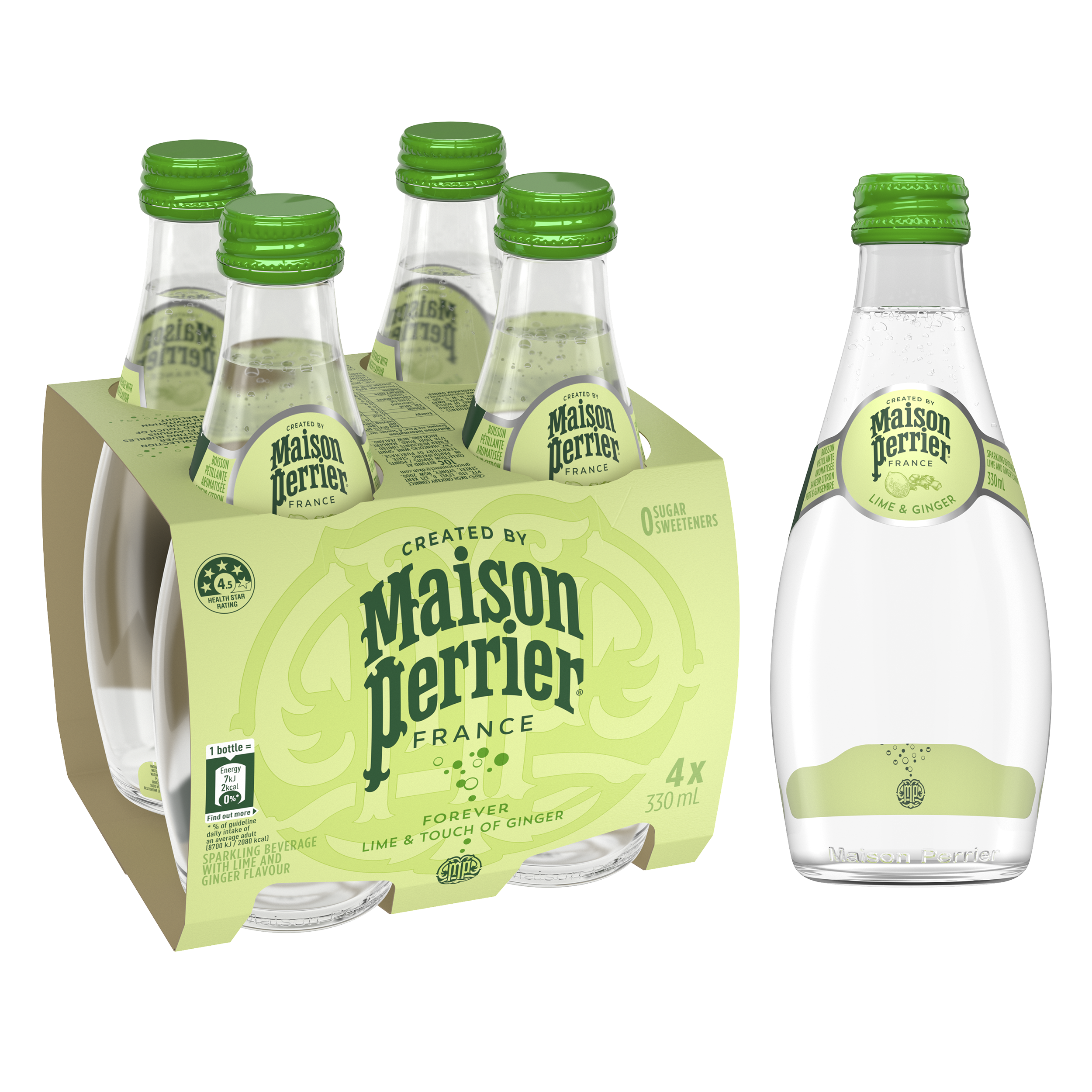 Ambalată într-o sticlă modernă de 0,33 L, Maison Perrier Lime & Ginger este potrivită pentru birou, sală, sesiuni lungi de lucru sau momentele în care îți dorești o băutură fresh, cu personalitate. De asemenea, este excelentă ca bază pentru cocktail-uri, mocktail-uri și băuturi mixate.